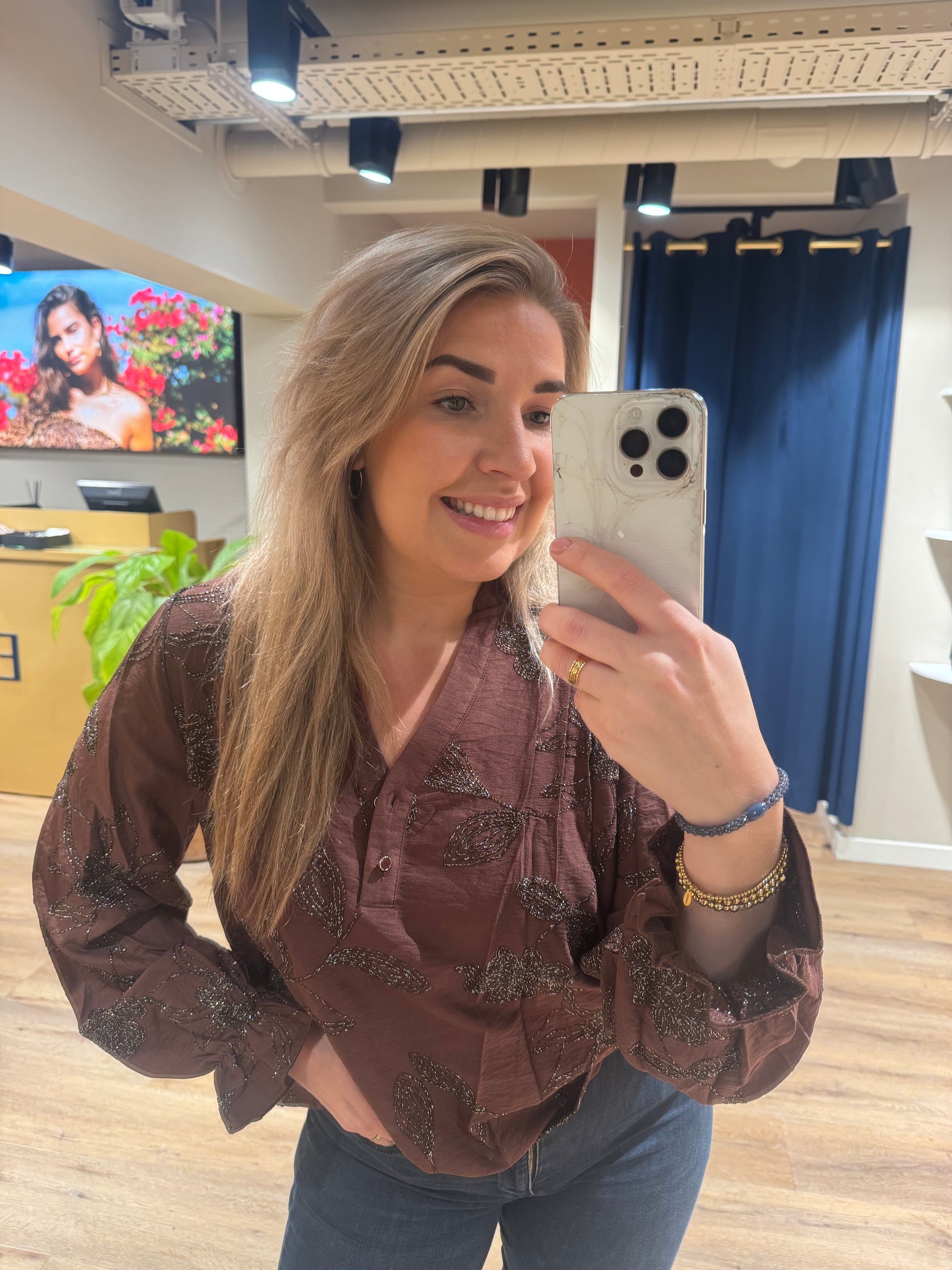 Onze bestseller blouse is een echte musthave voor iedere garderobe! Dit commerciële model heeft een mooie V-hals met twee knoopjes en een subtiel trompetmouwtje voor een elegante, vrouwelijke look. De blouse valt keurig op maat en is verkrijgbaar in verschillende prints, waardoor je hem eindeloos kunt combineren. Perfect voor zowel een casual dag als een geklede gelegenheid!