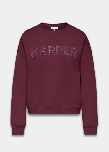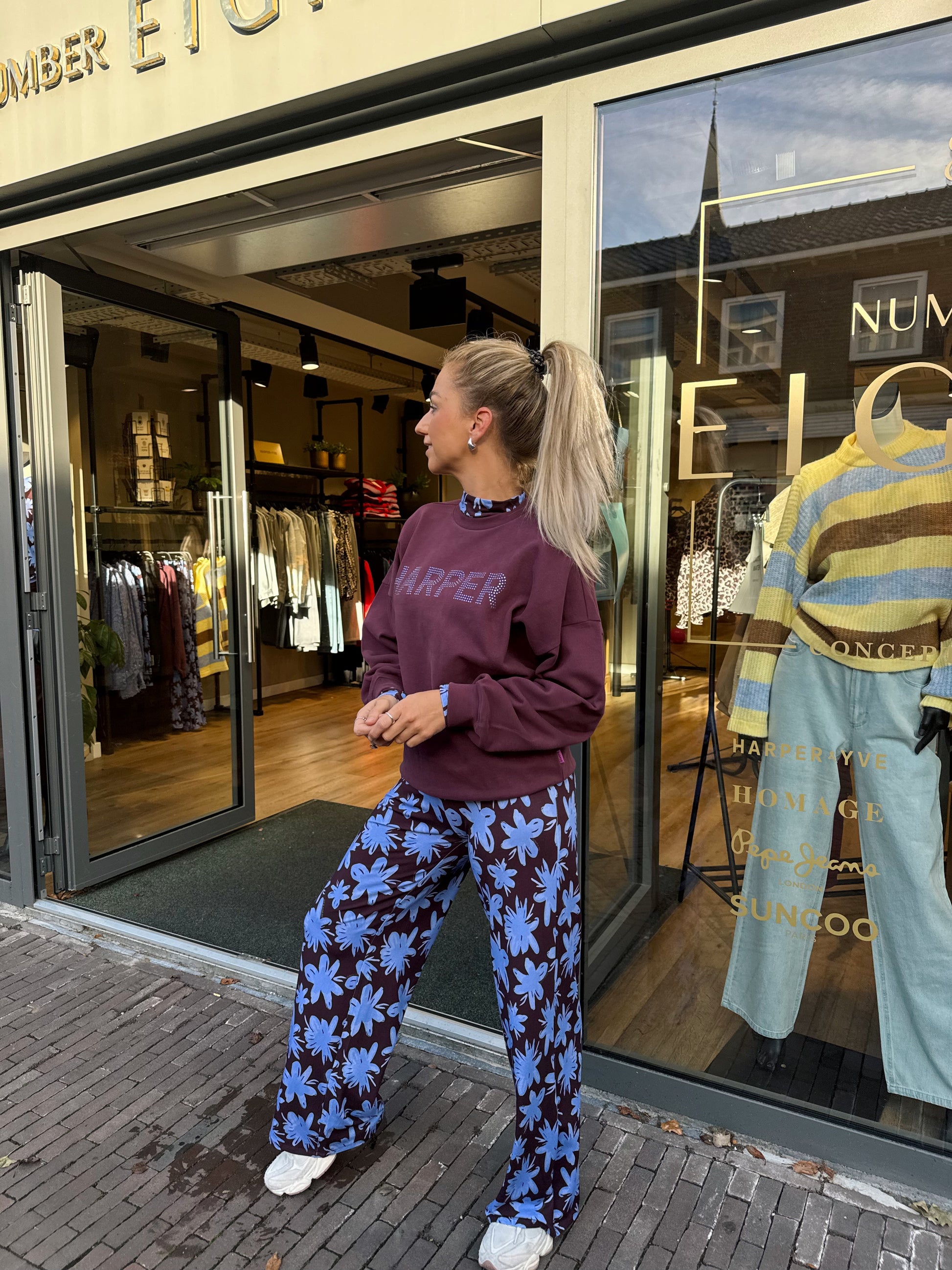 Bruin is echt één van de trendkleuren dit seizoen. Deze sweater van Harper & Yve is door de blauwe strass steentjes heel goed te combineren met een jeans.